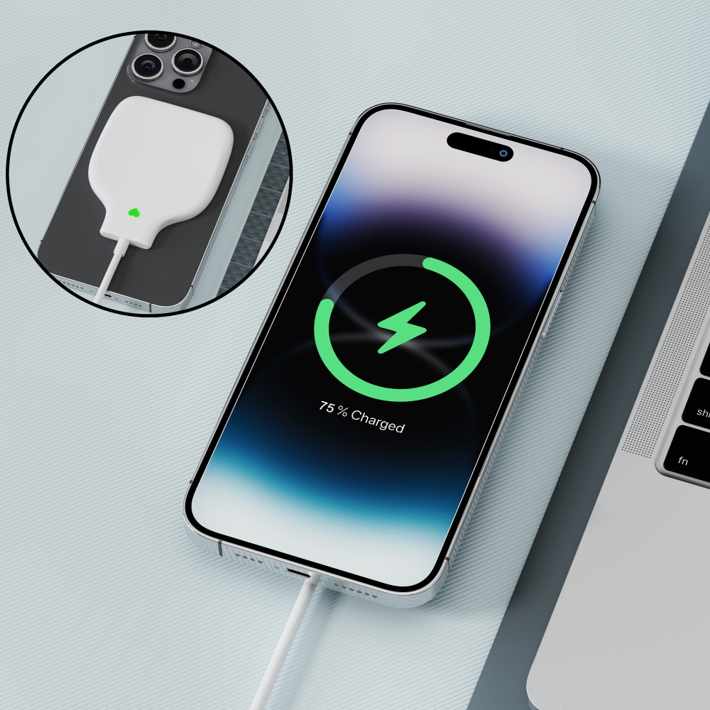 Artikel-Nr: ART41509N0001Begeistern Sie sich für Veränderung mit unserem kabellosen Ladegerät! Hergestellt aus Ozean-Plastik, kompakt, Magsafe-fähig und bietet 15W Ladeleistung sowohl für iPhone als auch Android. Entdecken Sie das grüne Herz: es signalisiert schnelles Laden und verbindet Nachhaltigkeit mit Bequemlichkeit.