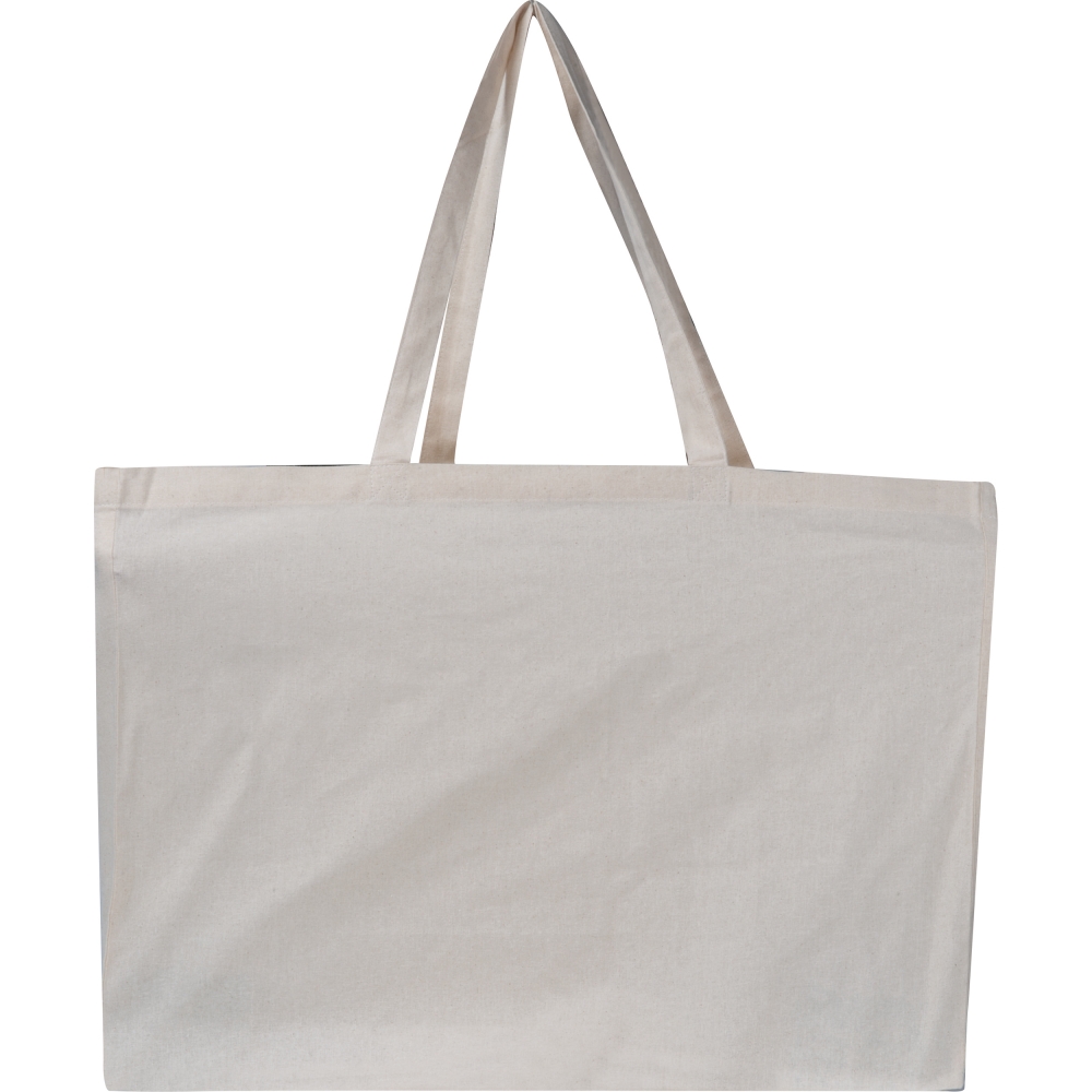 Artikel-Nr: MCM6526313XXL Einkaufstasche aus 140 gsm Baumwolle, großer Bodenfalte und zwei langen Henkeln. Sie bietet viel Platz für Einkäufe, als Strandtasche und vielem mehr. Ihre Werbung drucken wir auf eine Seite.