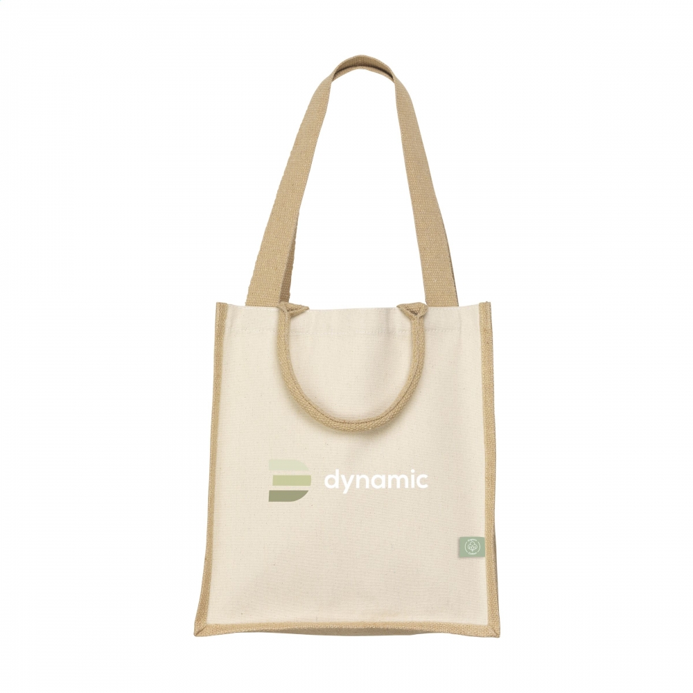 Artikel-Nr: CLP495342WoW! Einkaufstasche in natürlichen Farben und einer Materialkombination aus robuster Jute und ökologischer Baumwolle (320 g / m²). OEKO-TEX® zertifiziert. Mit langen und kurzen Henkeln. Eine robuste Einkaufstasche mit breitem, laminiertem Boden. Ideal für die häufige Wiederverwendung. Fassungsvermögen ca. 18 Liter.