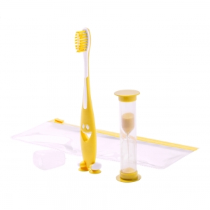 Artikel-Nr: AND741956-02Kinder-Zahnbürste aus Kunststoff mit Sanduhr, verpacht im Kunststoff-Etui.