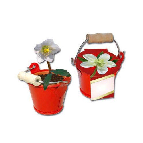 Artikel-Nr: W7194020Inhalt: Zinkeimerchen rot mit Holzgriff, Tontopf 4 cm, Erdtablette, Samen: Christrose, Format: ø 55 mm, Höhe 45 mm, Gewicht: 65 g, Werbefläche: 22 x 20 mm Deckel, 25 x 20 mm Eimerchen, Alternativ: eigene Gestaltung auf Banderole ab 250 Stück.