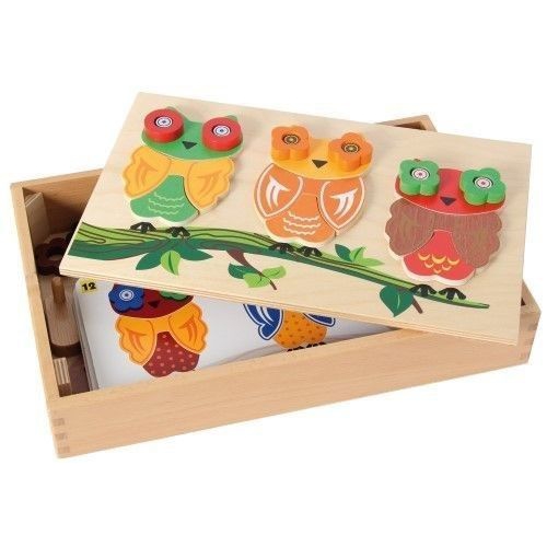 Artikel-Nr: 375110189Holzbox mit 30, teilweise magnetischen Puzzleteilen und beidseitig bedruckten Vorlagekarten. Beim Zusammensetzen der Eulen, nach Vorlage oder eigenen Ideen, entwickelt man seine Kreativität, die Farb- und Formerkennung und seine Hand-Auge-Koordination. Hochwertige Ausführung aus Buchenholz! In Kindergartenqualität!