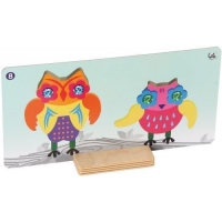 Artikel-Nr: 375110514Zuordnungsspiel mit vielen bunten Holzteilen zum Gestalten vorgegebener und eigener Eulen, alleine oder zu zweit. Ziel des lustigen Puzzles für Vorschulkinder ist es, die Köpfe, Flügel und Augen in den richtigen Farbe zu finden und mit den doppelseitigen Magneten auf die Körper zu stapeln. Die beiliegenden Vorlagenkarten dienen als Anleitung und Vogabe für die Kinder. Sie können aber auch ihre eigene Lieblingseule frei gestalten. Die beiden Grundflächen mit den Beinen können zusammengesteckt oder auch einzeln verwendet werden. Die Holzteile sind aus mit unbedenklicher Farbe lackeritem Buchenholz. Dieses Spiel fördert das Verständnis von Ablauffolgen, Farb- und Formerkennung, Feinmotorik und Hand-Auge-Koordination.