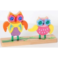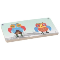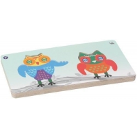 Artikel-Nr: 375110514Zuordnungsspiel mit vielen bunten Holzteilen zum Gestalten vorgegebener und eigener Eulen, alleine oder zu zweit. Ziel des lustigen Puzzles für Vorschulkinder ist es, die Köpfe, Flügel und Augen in den richtigen Farbe zu finden und mit den doppelseitigen Magneten auf die Körper zu stapeln. Die beiliegenden Vorlagenkarten dienen als Anleitung und Vogabe für die Kinder. Sie können aber auch ihre eigene Lieblingseule frei gestalten. Die beiden Grundflächen mit den Beinen können zusammengesteckt oder auch einzeln verwendet werden. Die Holzteile sind aus mit unbedenklicher Farbe lackeritem Buchenholz. Dieses Spiel fördert das Verständnis von Ablauffolgen, Farb- und Formerkennung, Feinmotorik und Hand-Auge-Koordination.