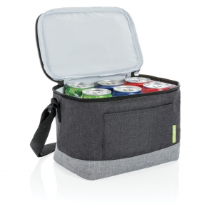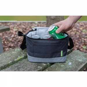 Artikel-Nr: XND422282Platz für bis zu 6 Dosen bietet diese Kühltasche. Mit Vortasche und Schultergurt. Hergestellt aus nachhaltigem 100% 600D RPET außen, das Futter aus 100% PEVA. Registered design®